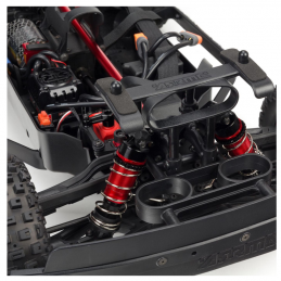 Experience the speed and durability of ARRMA® bashing in a big way with the 1/7 scale brushless MOJAVE™ 6S BLX Desert Truck. Designed Fast and Designed Tough, it's ready for extreme performance right out of the box, whether you're blasting through coastal sand dunes or thrashing across concrete sidewalks. The MOJAVE™ 6S BLX has the muscle to overcome almost anything in its path. Its 2050Kv brushless motor and 4S/6S brushless ESC provide the potential for competition-crushing speeds. The MOJAVE™ 6S BLX also comes factory-equipped for incredible handling and precise control, with a high-quality Spektrum™ 2.4GHz radio system, durable metal gear servo, and dBoots® FORTRESS tires that find solid traction on a wide range of surfaces. The multi split-spoke wheels are color-coordinated with the matte and gloss finished desert truck body, which features realistic cockpit details.