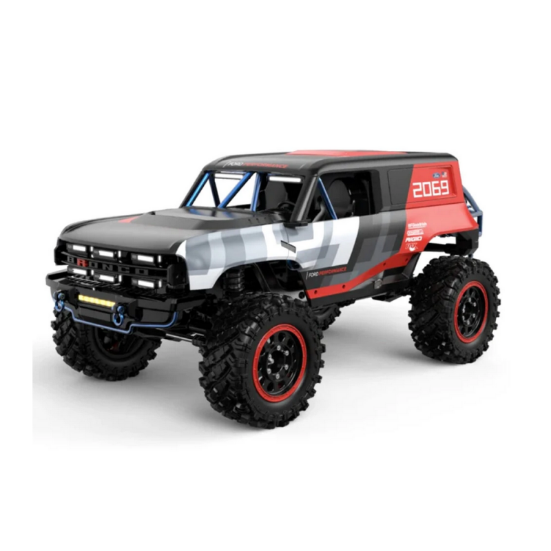 MJX H12P Ford Bronco R 4WD Crawler a escala 1/12 con licencia oficial ofrece un diseño espectacular, una fiabilidad excepcional y una potente experiencia de crawling. Está repleto de increíbles características, y el motor brushless incluido proporciona la potencia suficiente para trepar y enfrentarse prácticamente a cualquier terreno montañoso.